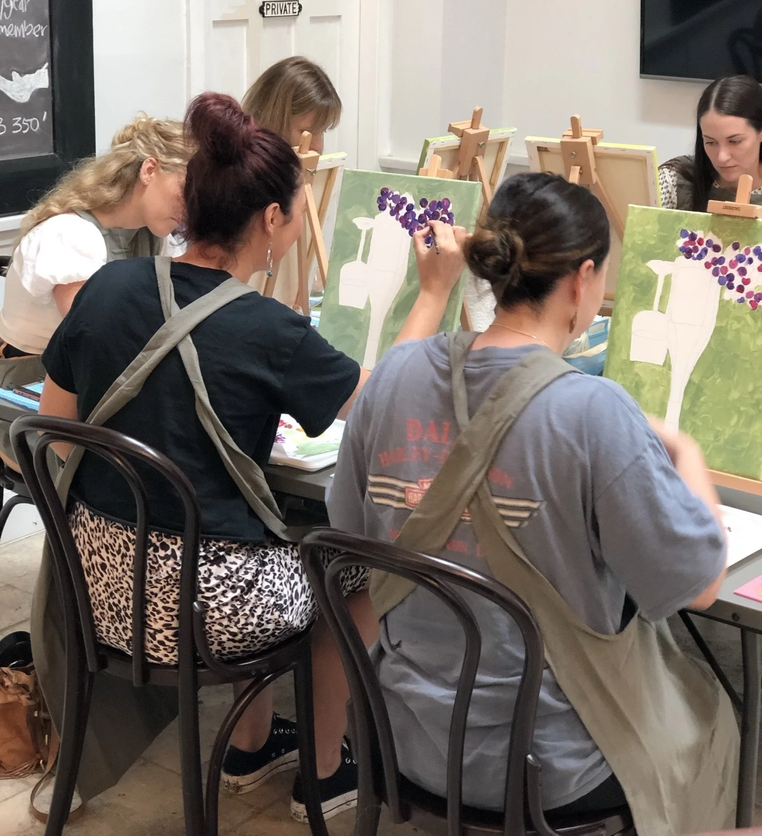 Bring out your inner art enthusiast and sommelier as you sip your way through an afternoon learning and painting in the seclusion of a Hunter Valley boutique vineyard. Hollybrook Art N Sip is mobile and has linked up with Greenway Wines to offer Art N Sip classes in the vineyard. This is a great opportunity to book this private 4 hour session for your group. Have some fun with family, friends, or colleagues enjoying a vineyard tour, a private Greenway Wines tasting along with a generous cheese and charcuterie plate, and the experience of painting your very own masterpiece! All materials are provided. And the best thing is....there is no right or wrong and no experience necessary!